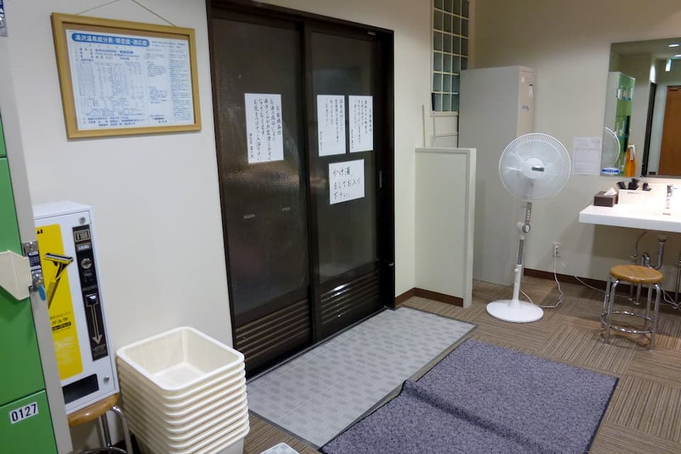 受付の先は左に大荷物用のロッカー室があり、すぐ先に脱衣所があります。