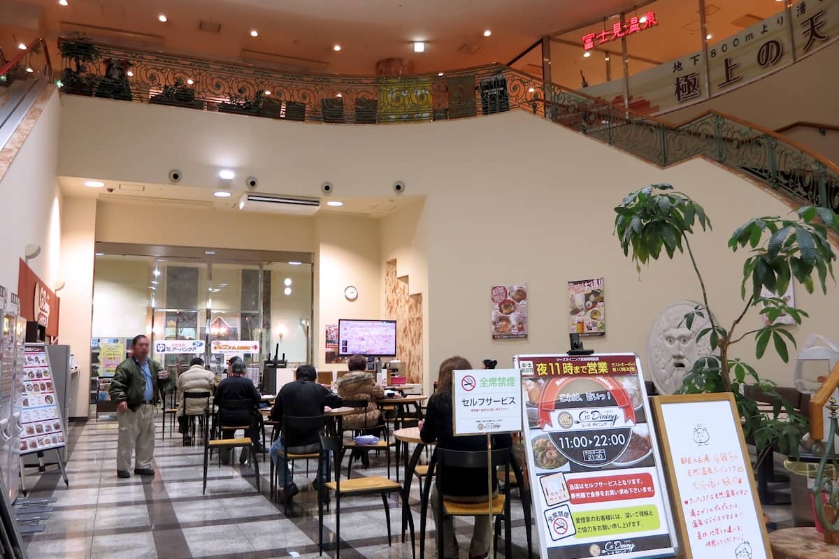温泉内に食堂はありませんが、温泉入口の1階に食事のスペースがあります。