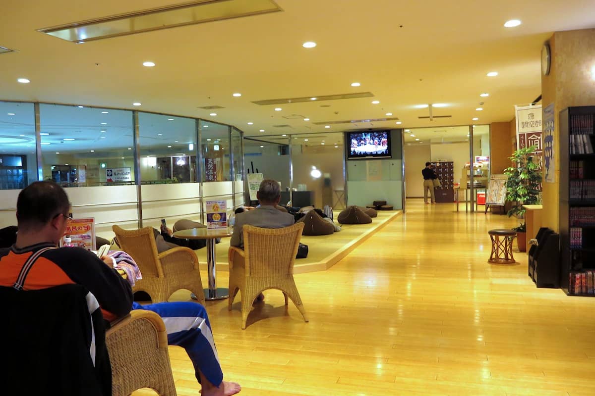 フロントの先は椅子と座敷の休憩スペースがあり、その上の3階が浴室です。