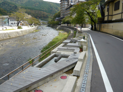その後川沿いをだいぶ歩いて足湯「もっけ湯」へ。