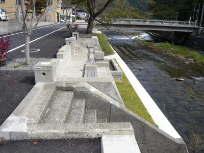 川沿いの休憩スペースがかなりユニークで面白かったです。