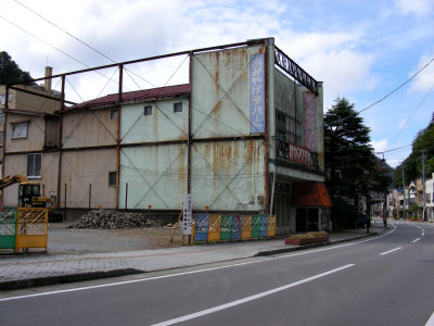 さて「温泉センター」らしきモノが見あたらないなと思っていたのですが、よーく見ると潰れたビルに「庄交あつみ温泉センター」と書かれていました。