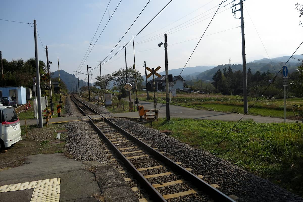 ホームを渋川方面に向かい、線路脇の道を進むと近道です。