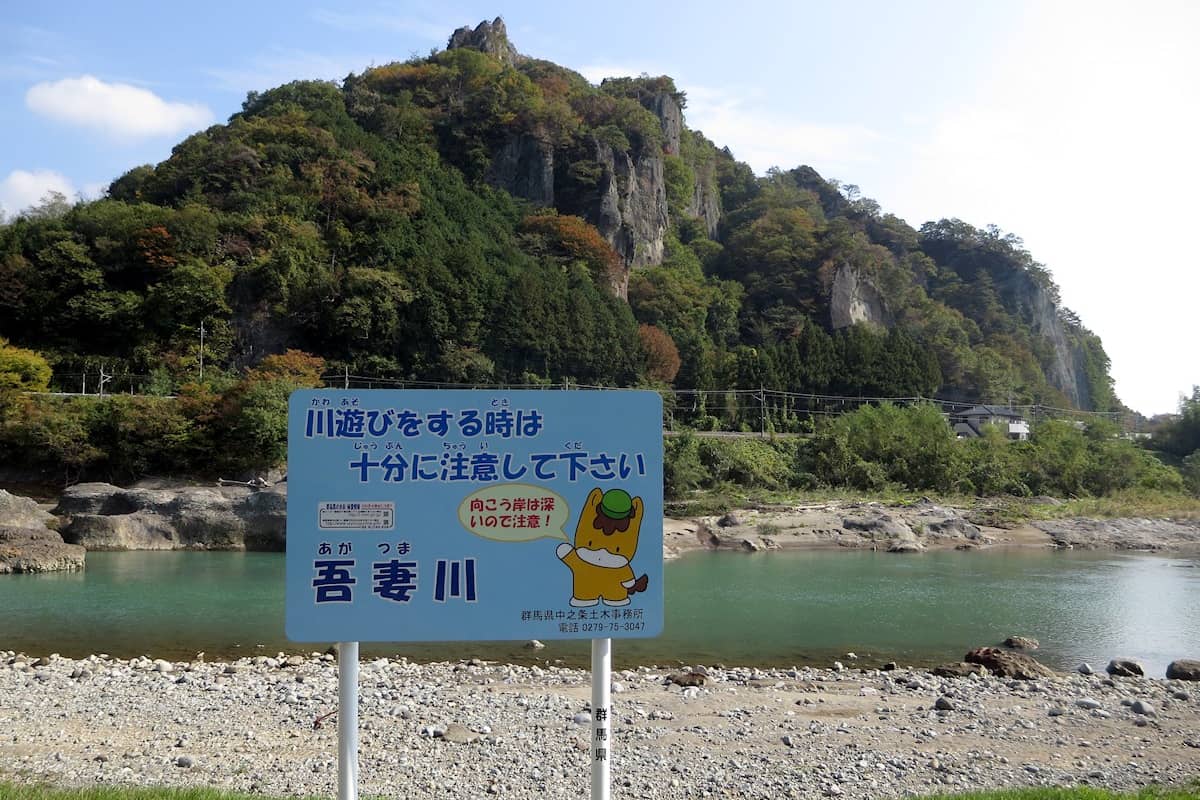 吾妻川の橋を渡ってからは川沿いの遊歩道を歩いていきます。