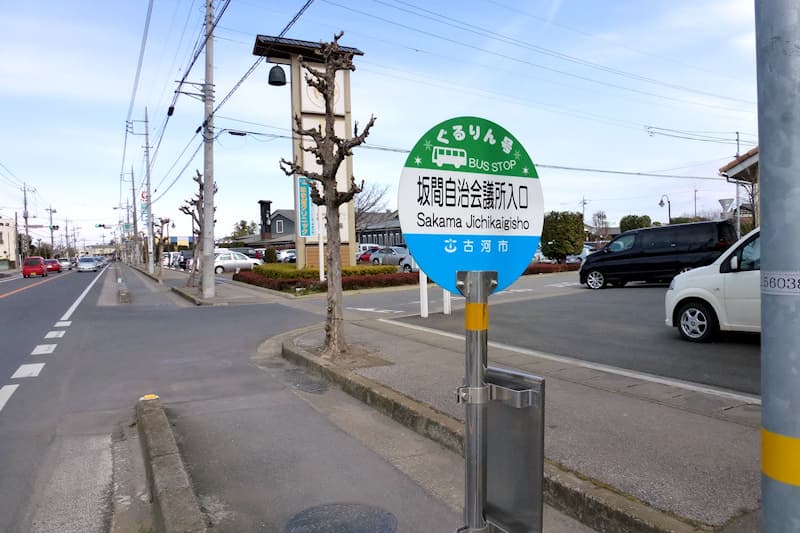 アクセスは宇都宮線古河駅西口から、古河市循環バスぐるりん号「南コース(循環)」線で「坂間自治会議所入口」下車、すぐです。