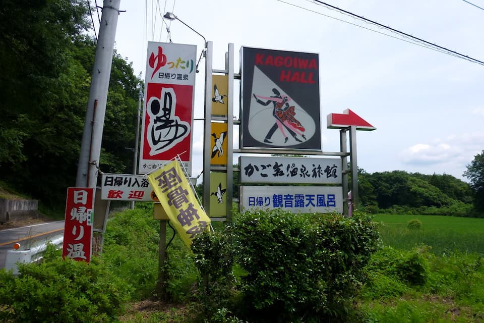 かご岩温泉の入口の看板。
