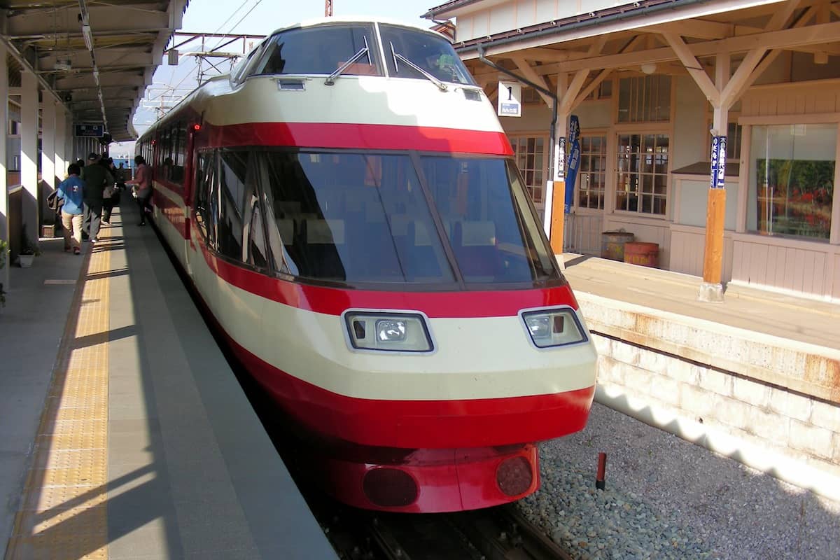 長野電鉄の終点湯田中駅にて特急です。