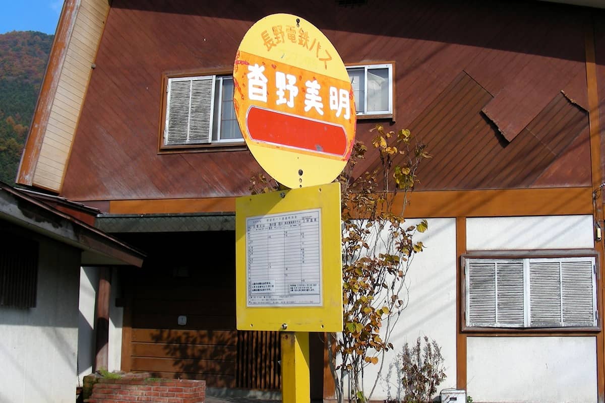 アクセスは湯田中駅から長電バス「志賀高原」「白根火山」「上林温泉」行で8分「沓野美明(くつのみみょう)」下車、徒歩数分です。