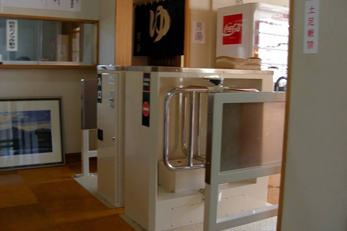 入口に受付がなく、簡易的な自動改札のようなゲートにお金を入れて入館します。