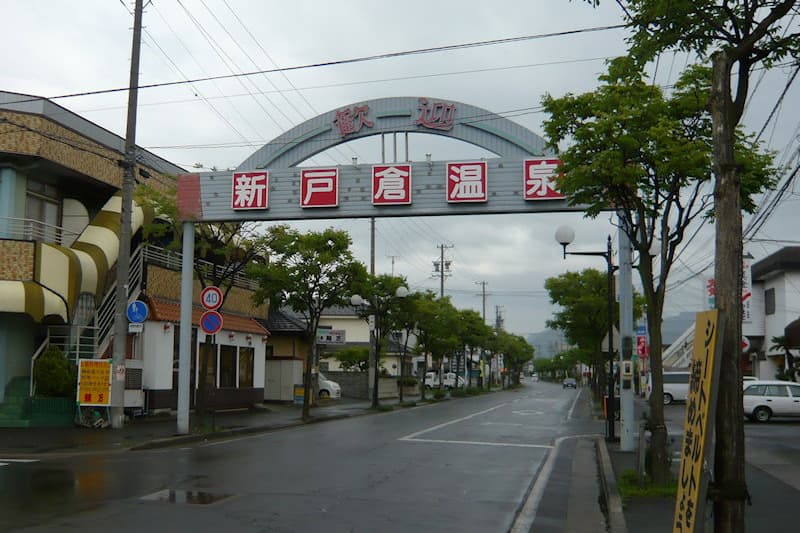 新戸倉温泉のゲートを通って、温泉街に入ります。