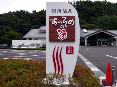 駅から温泉街とは逆方向へ少し行くと巨大な「あいそめの湯」が見えてきます。