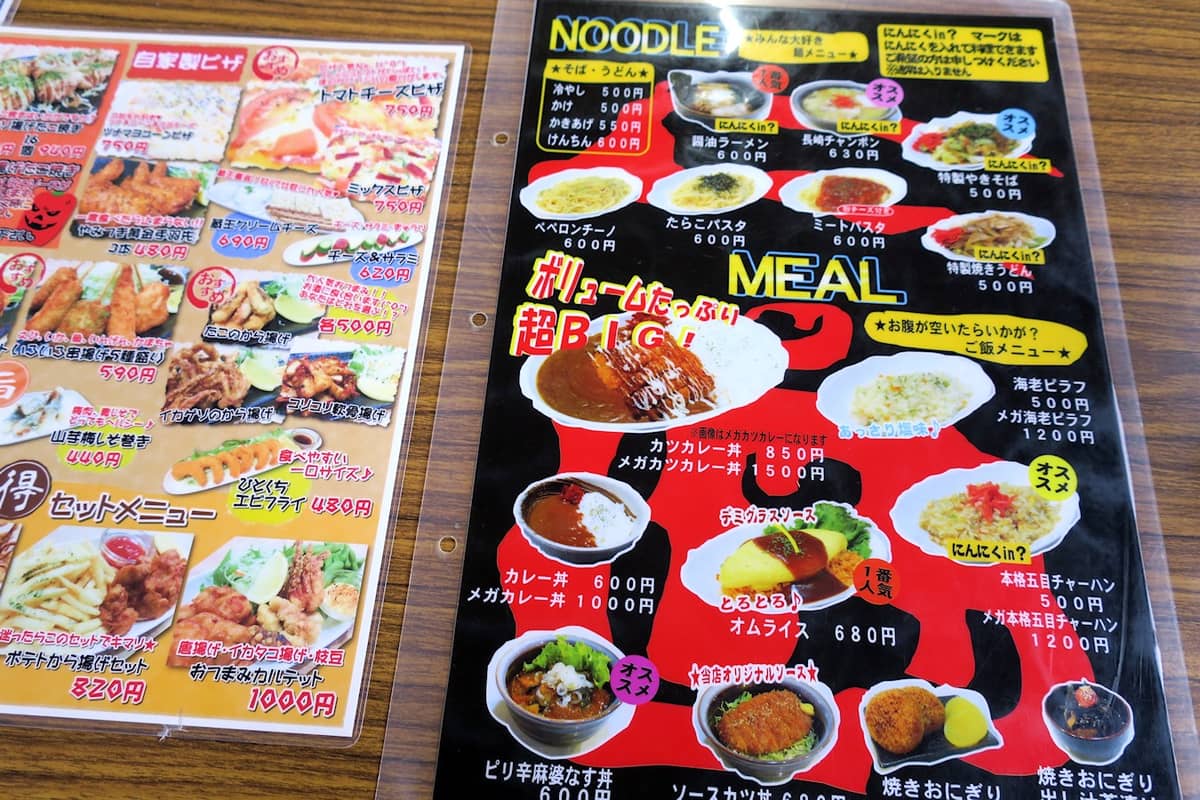 食事メニューはカラオケ屋さんらしい感じで、種類豊富にあります。