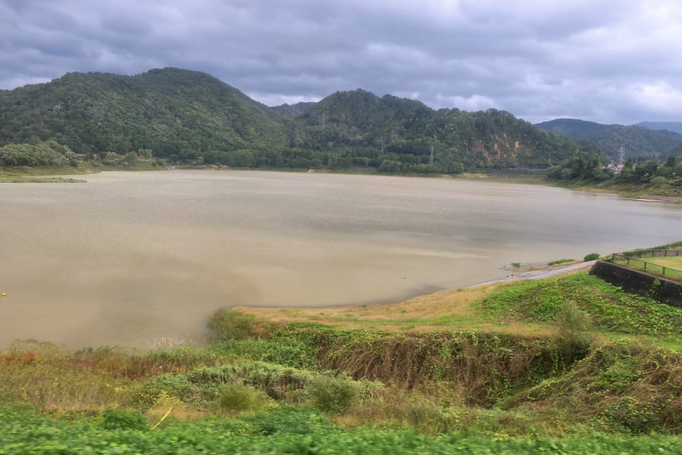 ほっとゆだ駅を過ぎると、ダム湖の錦秋湖が見えてきます。