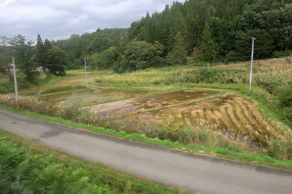 車窓は山間の田園風景という感じです。