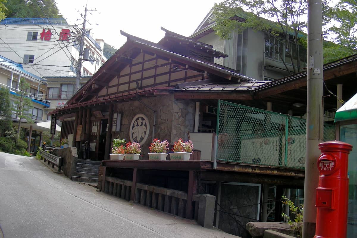 最初にある旅館「丸木屋」の先を左折すると王湯が見えてきます。