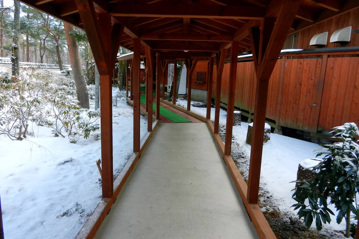 受付をしたあと、建物を出て温泉の棟に進みます。