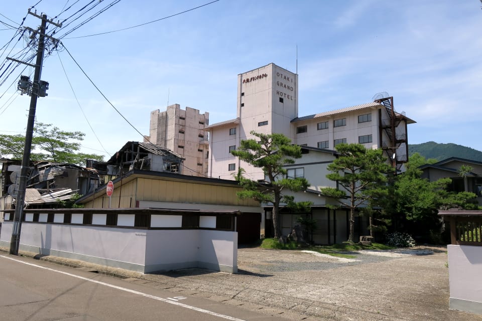 遠目に見て一番大きな建物は大滝グランドホテルです。