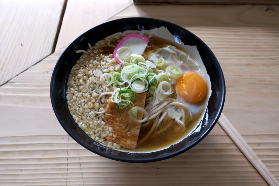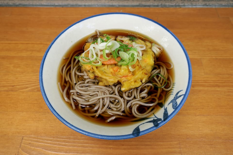 天ぷらは野菜のかき揚げにエビが乗ってるのが特徴です。