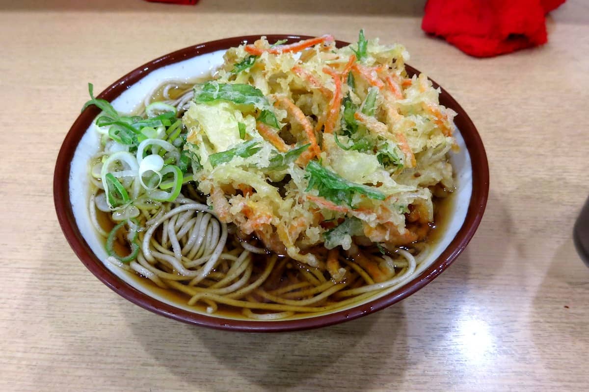 夕食は八戸駅の立ち食いそば屋「そば処はやて」でかき揚げ天そばです。