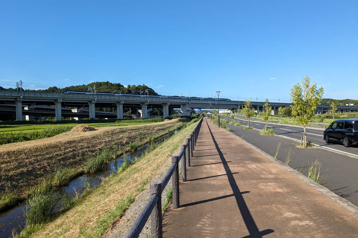 スカイアクセスの高架をくぐると、右の方にそれらしい建物が見えてきます。