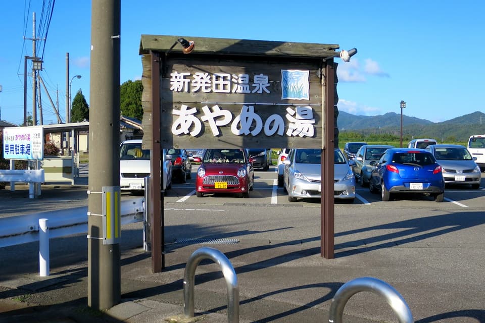 バスでは新発田駅前から川東コミュニティバスで6分「高浜・あやめの湯」下車、徒歩数分です(平日のみ、本数少ない)。