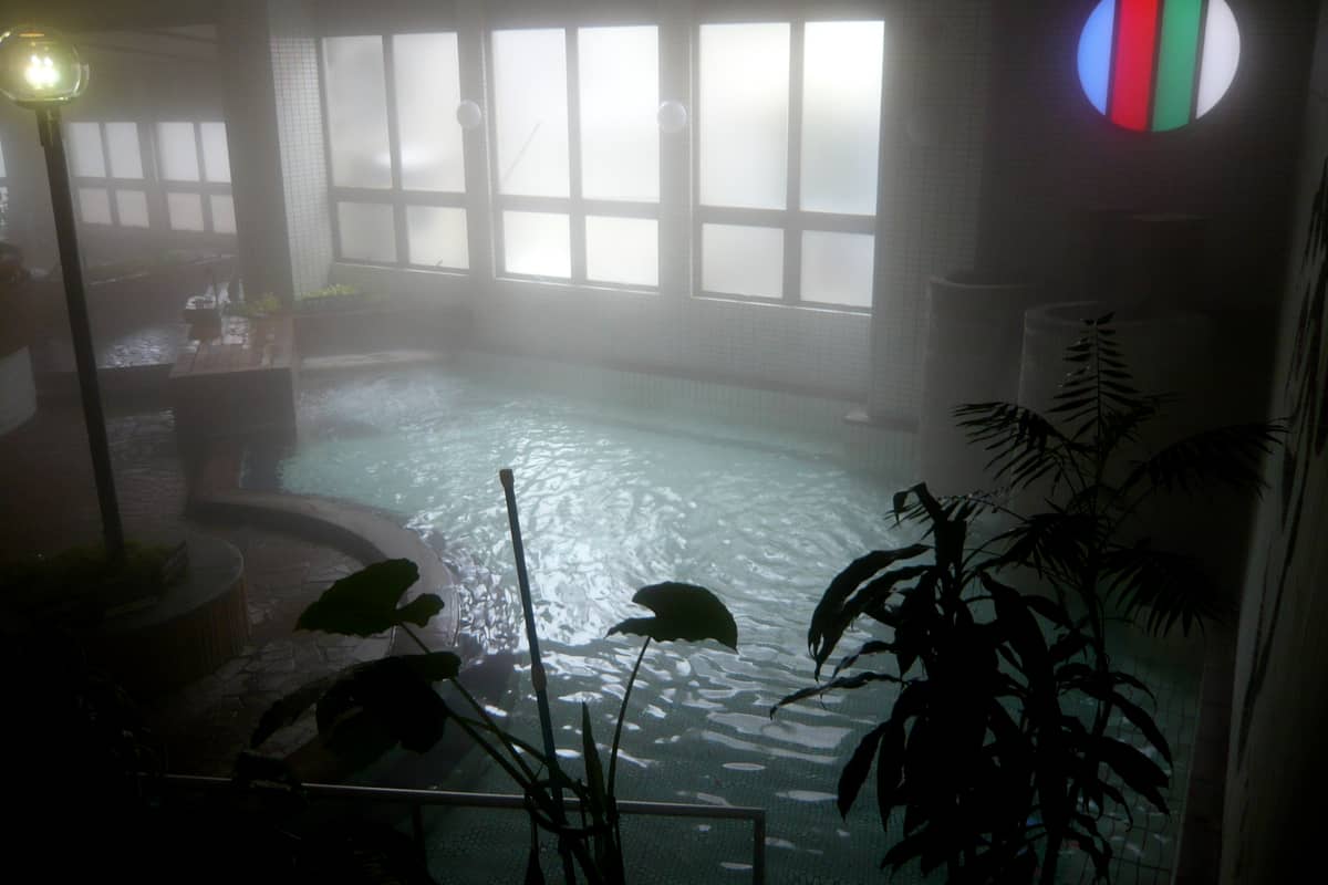 内湯は2つに区切られた大浴槽があり、手前が熱湯、奥が温湯となっています。
